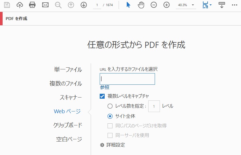 Adobe Acrobat DCには「WebページからPDFを作成」という機能がある。