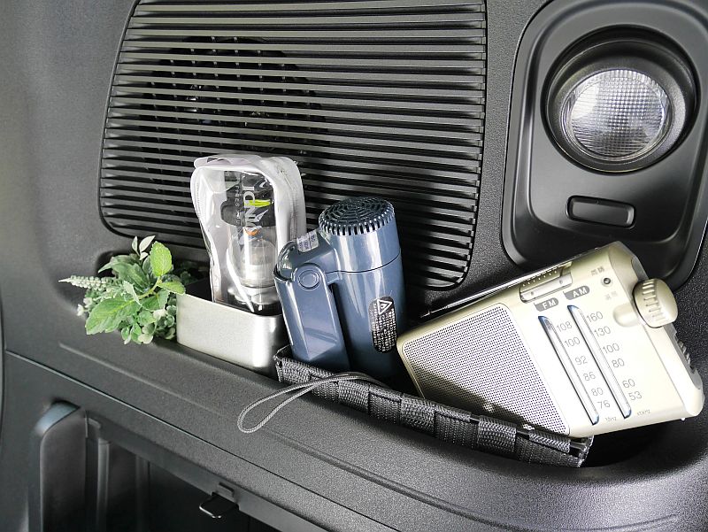 実はこの他に事務キチで衝動買いした常設のLEDランタン(RD-LED 100-BK)もあったりする。(^^; ←3つもランタンを置いてどうすんだ! ちなみに、このランタンは、20年前のワゴンR時代から持っている天井ネットに引っ掛けている。