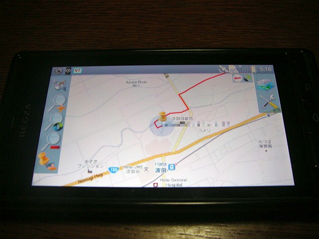 ちなみに、画面表示しっぱなしだとバッテリーが10分で約8%減少したんで、連続使用の持ち時間は約2時間。まぁ、道が分からないときに連続表示させるぐらいだから、実用上全く問題なさそうだね。(^^)/