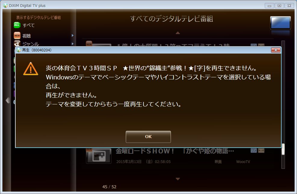 番組一覧は表示されるが、クリックしてもエラー(80040204)で再生できない。(T-T)