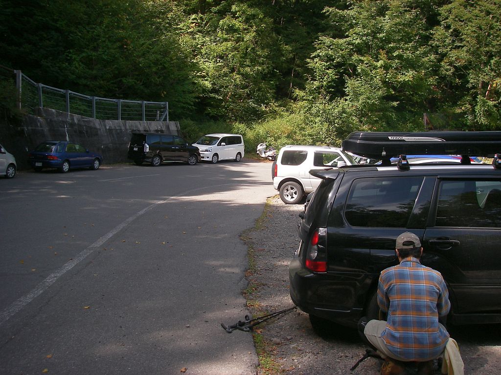 登山口到着は11:30。早朝組がちらほら降りてくるタイミングのため駐車は幸い問題なし。