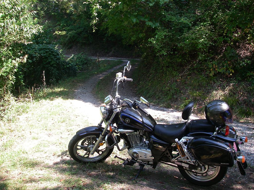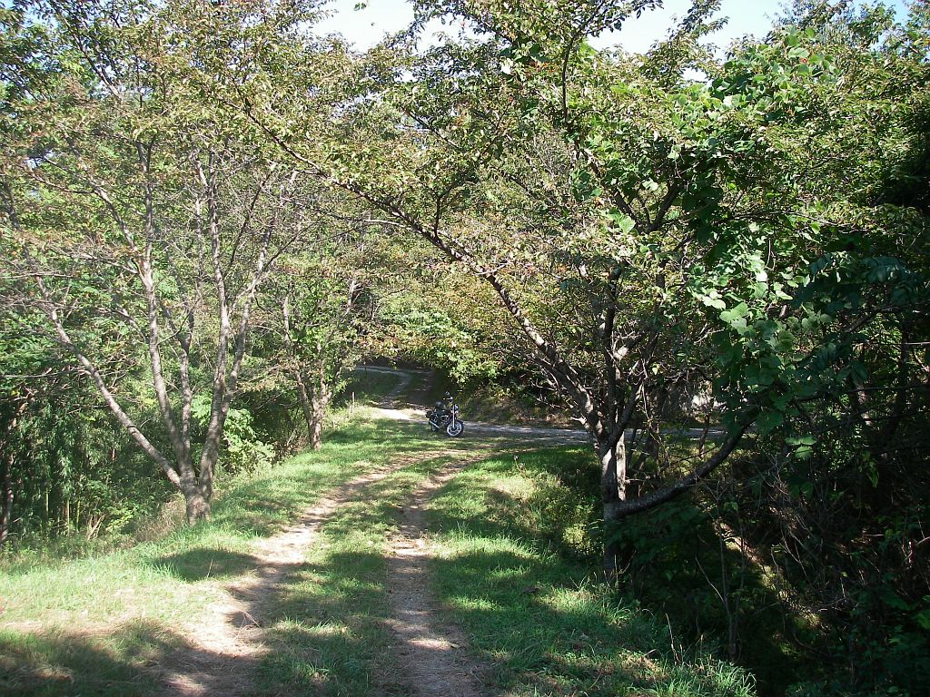 ここから右折するのだが、道が更に細くなりバイクでも厳しくなりそうな気がしたので、この分岐点にバイクを停めて歩いて行くことにした。《12:18》