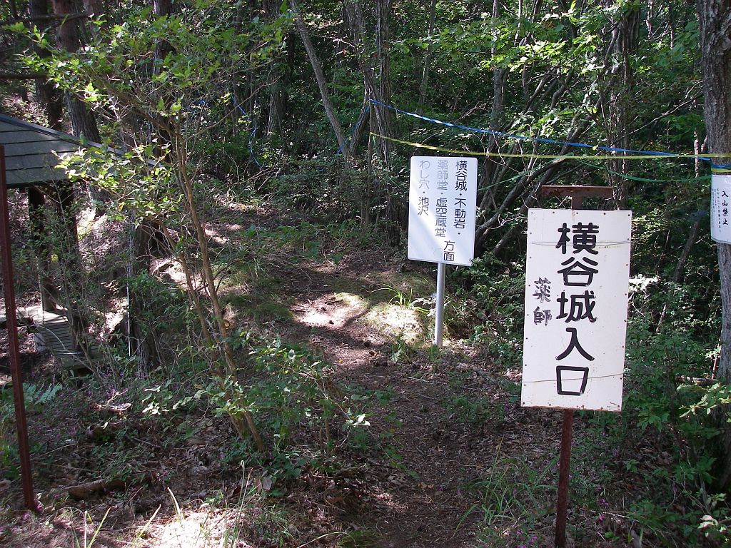 そして休憩場所の脇に横谷(薬師)城入口の看板。