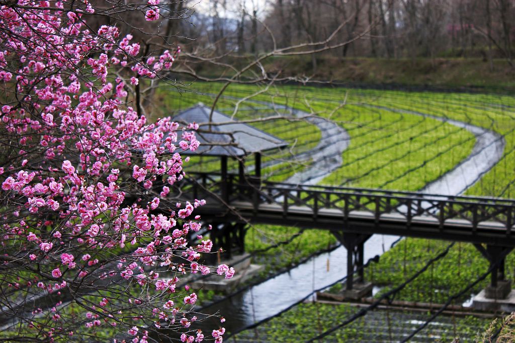 梅の花はさほど多くないが、わさびの緑でピンクが映えてとても綺麗♪