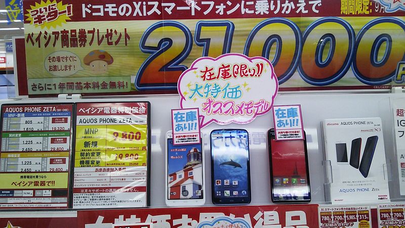①SH-06E --- 9800円+ベイシア商品券21000円 ※10/31まで