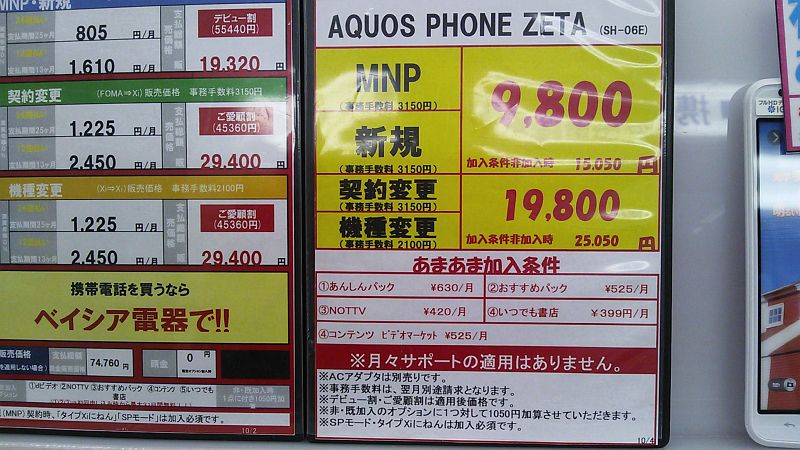 前記事で週末にSH-06Eをベイシア電器で契約するという予告をしたのだが...