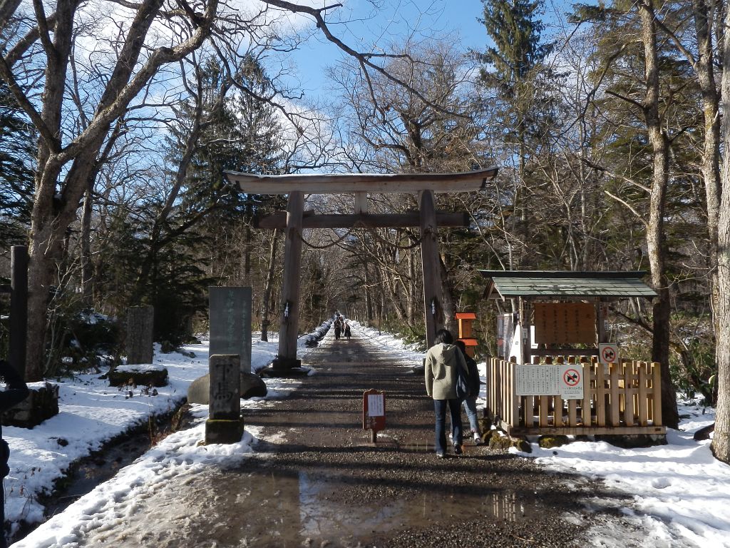 前日雪がかなり降ったらしく、ビショビショ、ツルツルの参道を2km歩くはめに。(T-T)