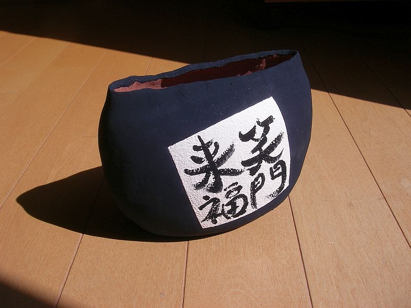 仕上がりは、最初のイメージとは全然違う、ちょっと渋めの花瓶。(^^;