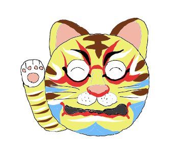 これも、タブレットで猫の顔のデザインを考え、アクリル絵の具で絵付けしている。