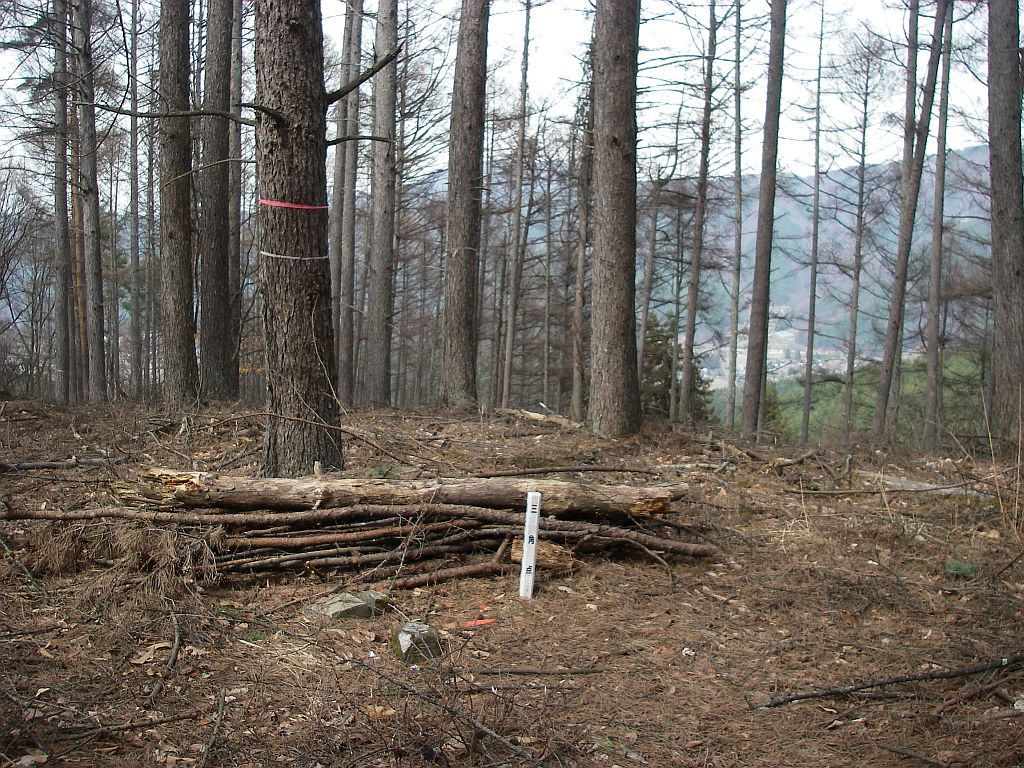 最初のうちは尾根沿いに道らしきものがあったのだが、だんだんと不明瞭になり、しまいには消失。道なき道を、所々に結びつけられた赤いリボンとを頼りに(帰りに気付いたが、リボンは至る所にあり、目印とは言えないかも)、ひたすら上に向かって歩くことになった。