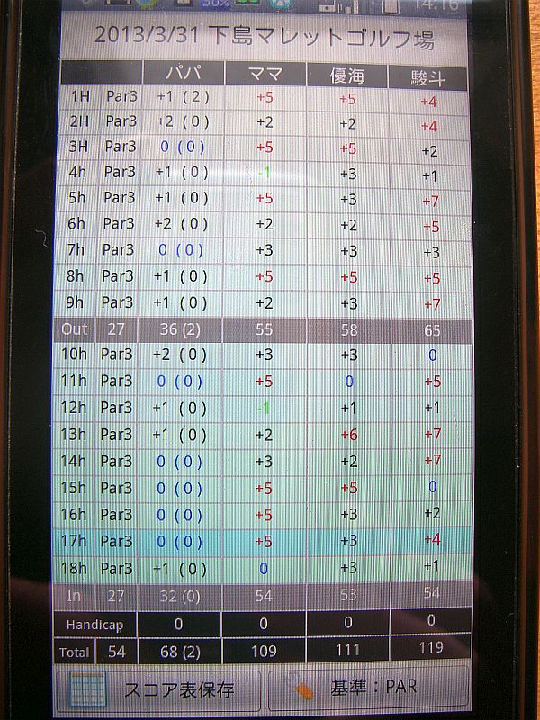 スコアは、スマホ(Androidアプリ:Smart Golf Score)で記録。