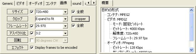 前回は、FortmatFactoryとSUPER cを使ったが、640x480を単純に720x480へ変換すると、横伸びした不自然な映像となってしまうため、左右に黒帯を付加して変換したいと思い調べたところ、MediaCoderなるソフトが黒帯やクロップに対応しており使えそうなことが判明。ただ新しいバージョンは強制終了するなど動作が不安定なため、最終的に0.7.0.4385を使用。