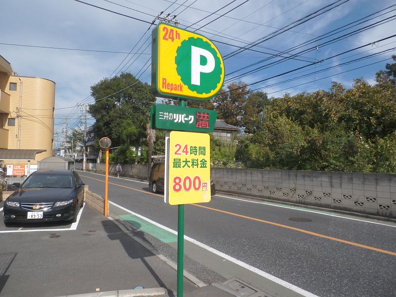 カーナビでそこを目指すが、カーナビが古いせいか細かい場所がよく分からず迷っているうち... いなげや三鷹牟礼店の先に三井のリパーク(最大800円)を発見!運よく1台分空いており、無事駐車完了。
