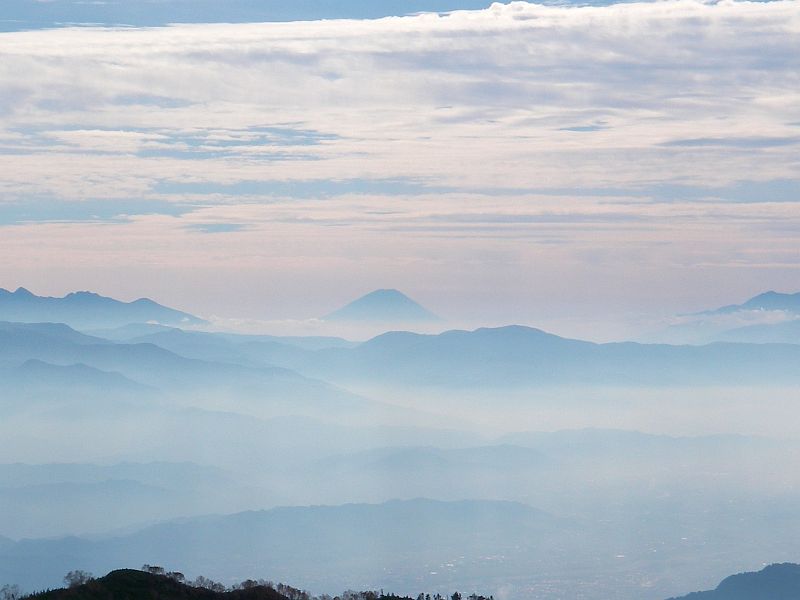 お日様はほとんど拝めなかったが、無風で雲もなく、山並みを綺麗に眺められたのは幸運だった。※前日は、麓は晴れてたが、山頂は曇りで強風という悪コンディションだったらしい