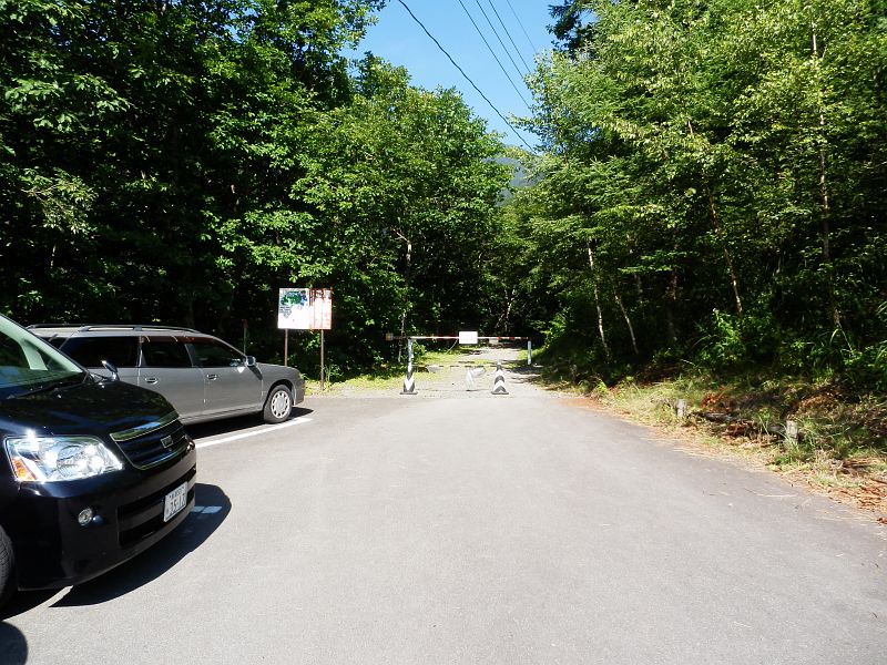 マイカー規制のゲートの横にある、三本滝レストハウス(標高1800m)に車を駐車し、施設右側の三本滝に向かう道を進んでいく。