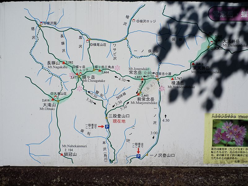 蝶ヶ岳と常念岳の共通の登山口となっている三股に到着したのは9:00という遅い時刻。