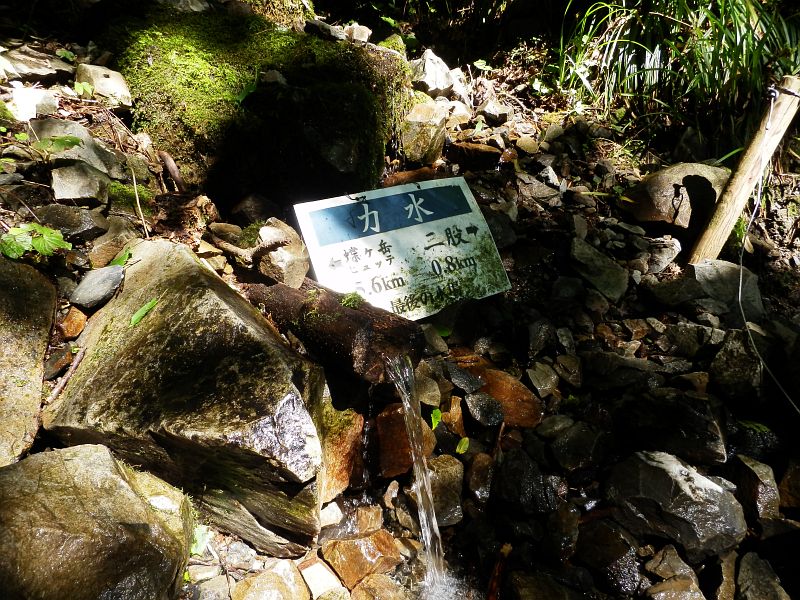 広い方向の○印の先にあったのは力水(最後の水場)。