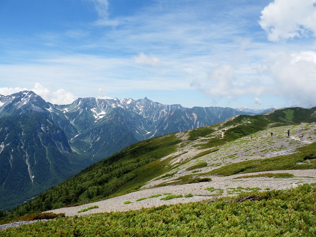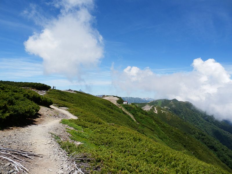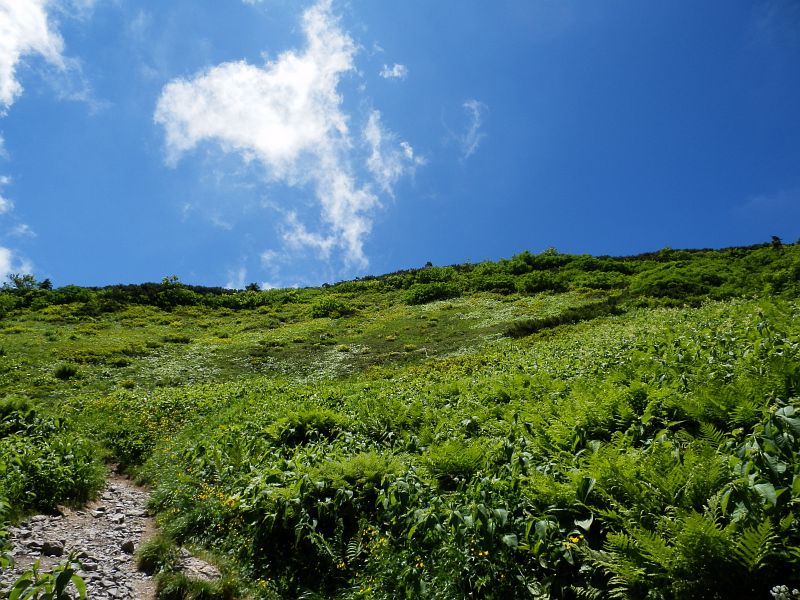 大雪渓・肩の小屋口バス停でエコーラインに別れを告げ、目標の剣ヶ峰をロックオン。
