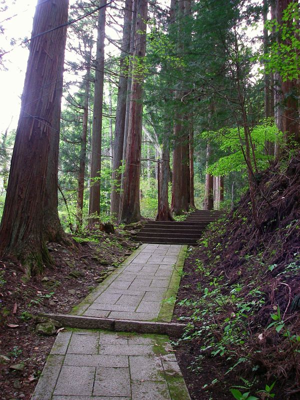 本宮の左後から始まる登山道は、いきなり細くて険しい急斜面の登り。