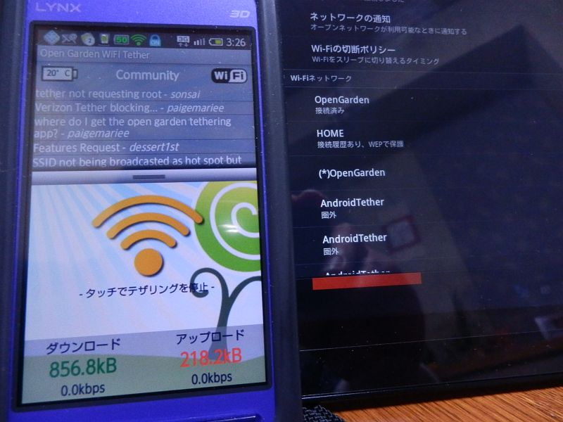 なので、次に「Wireless Tether」というアプリを試してみることに。