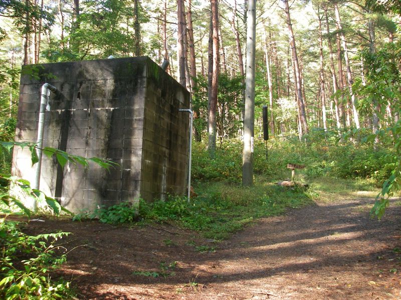 アートヒルズミュージアムの西側の道(忍ヶ丘学者村入口の1つ北側の道)を真っ直ぐ入った突き当たり(道が狭く深くえぐれた溝もあるため車の運転には十分注意)、温泉引湯施設の横に駐車した。
