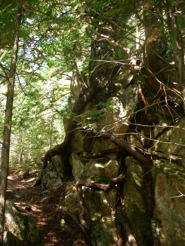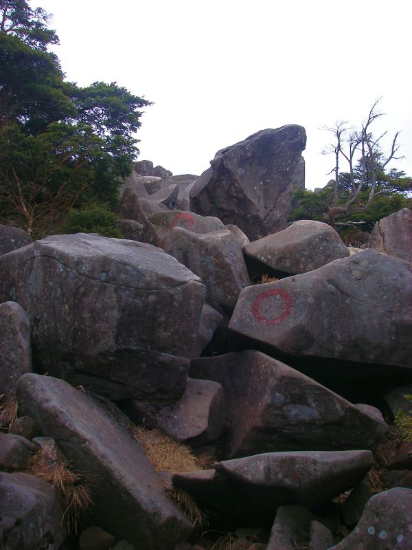 高見石に直接向かうルートは傾斜が緩やかで楽に登れる。ただ最近雨が降ったのか、所々にぬかるみがあり、点在する石もとても滑りやすく、何度か足を取られ転びそうになった(^^;。