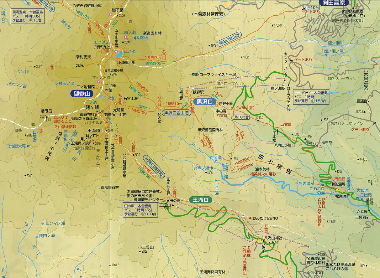 御嶽山の登山口は王滝口(田の原天然公園)、黒沢口、開田口、小坂口の4箇所あるが、