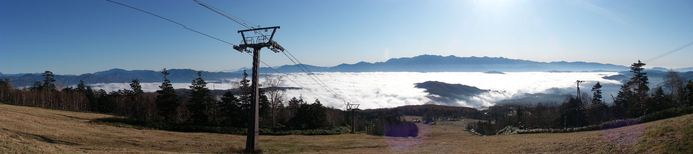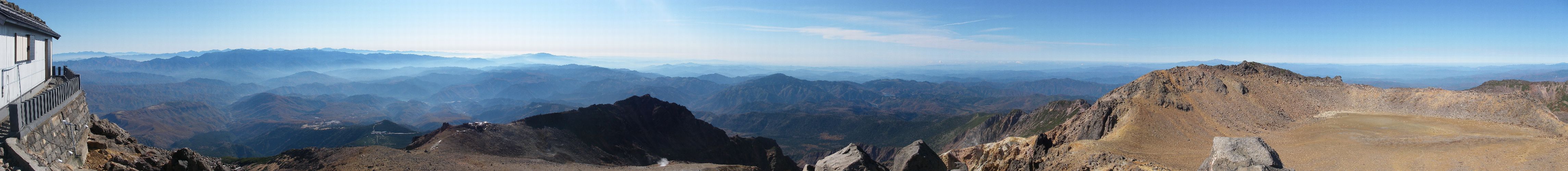 今まで何度か180°/360°眺望という山に登ってるが、遠くの山々がこれ程鮮明に見えたのは初めてかもしれない(富士山も見えた)。