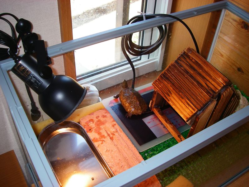 野生のイシガメは冬眠するらしいが、子ガメや老ガメを下手に冬眠させると体力が持たなくて死んでしまうことがあるとのことなので(初心者はやらない方が無難とか)、我が家のカメちゃんは加温越冬させることにした。