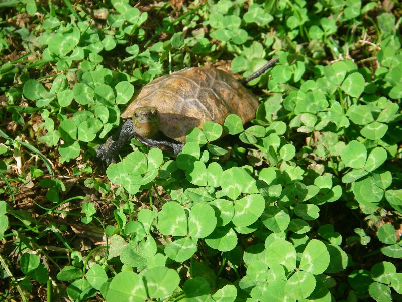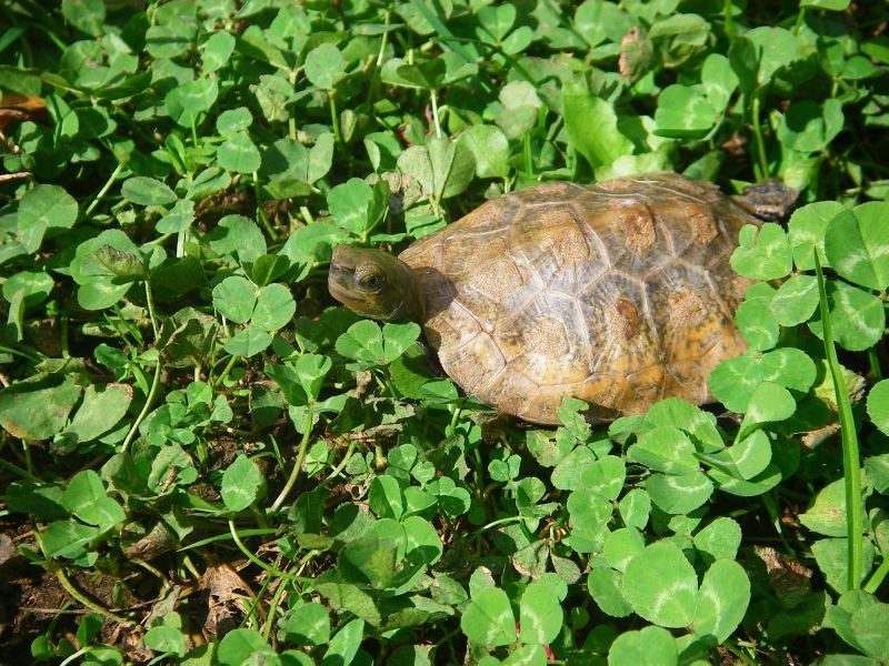 晴れた日に元気に庭を散歩するカメちゃん。